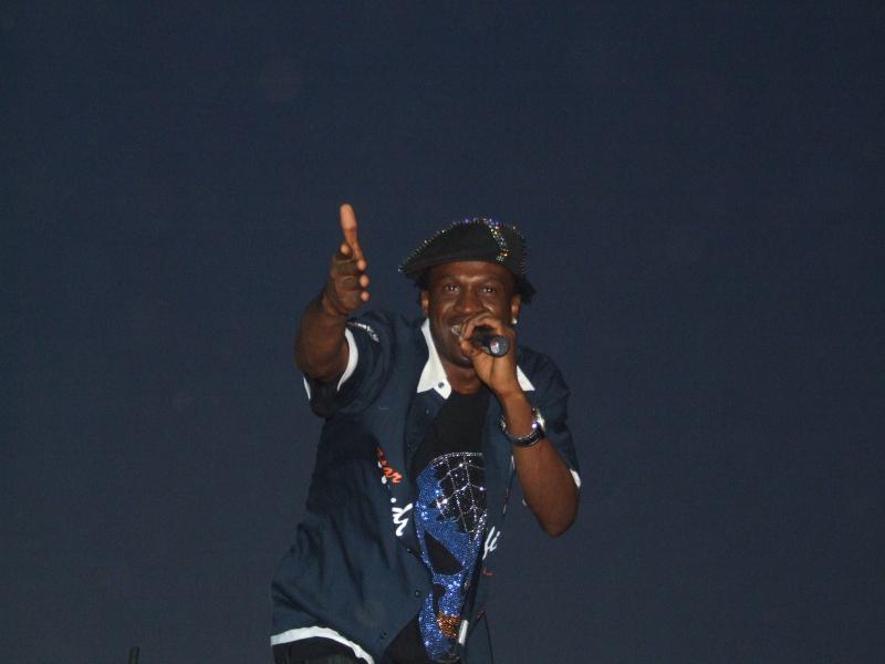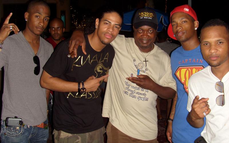 Moments before a concert DJ Dollie is flanked by J. Martins (left) and Timaya two of Nigeria's hottest solo acts.