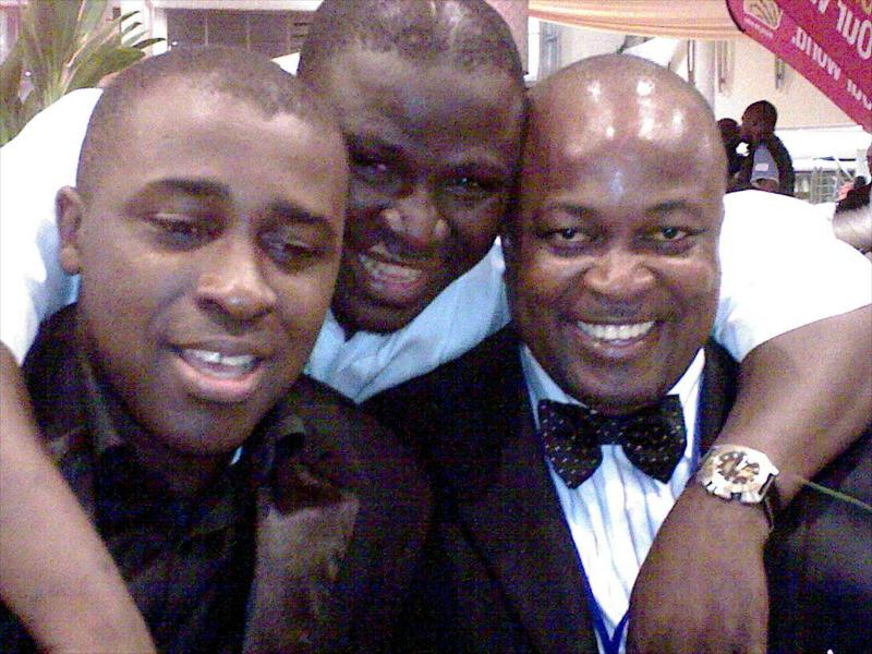 Dollie, right, gets love from Gbenga Adeyinka 1st,(middle) a top comedian and Frank Edoho, host of Nigeria's "Who wants to be a Millionaire"