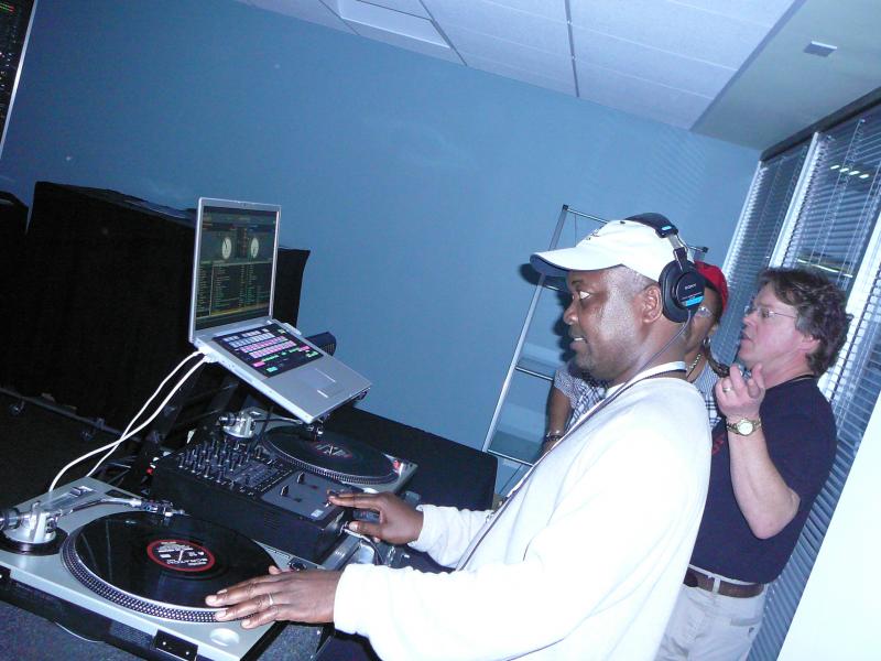 DJ Scetch (of the Specialists, LA) with DJ Dollie Popman.